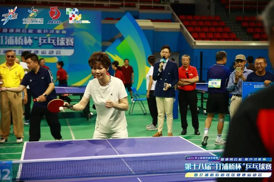 中国乒乓球学院院长、上海市社区体育协会会长施之皓和乒乓球世界冠军曹燕华来到现场为比赛开球。现场多位幸运球迷有机会与世界冠军切磋球技。